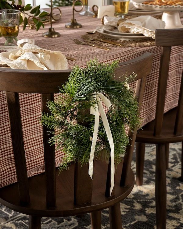 By the way, small wreaths attached to the backs of dining chairs and kitchen counter stools are an easy way to add a charming seasonal touch to your home.