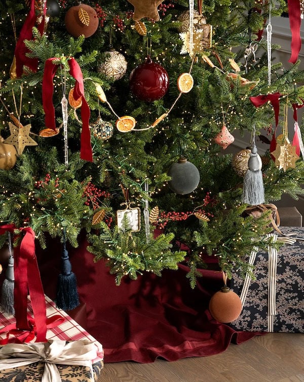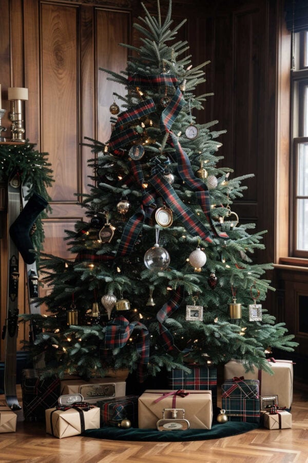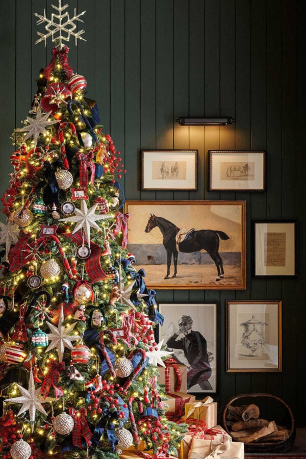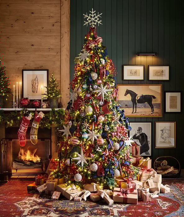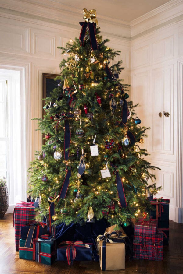 Don’t forget the base — wrap your tree stand in a soft plaid blanket or tree skirt for that Ralph Lauren touch of old-world refinement.