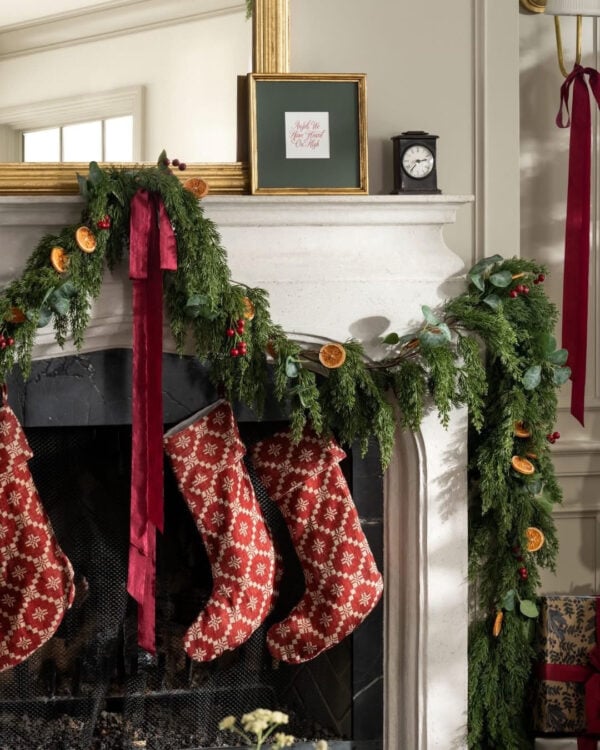 Drape garlands over mirrors or mantels, and tuck in orange slices, eucalyptus or magnolia leaves for a touch of softness.