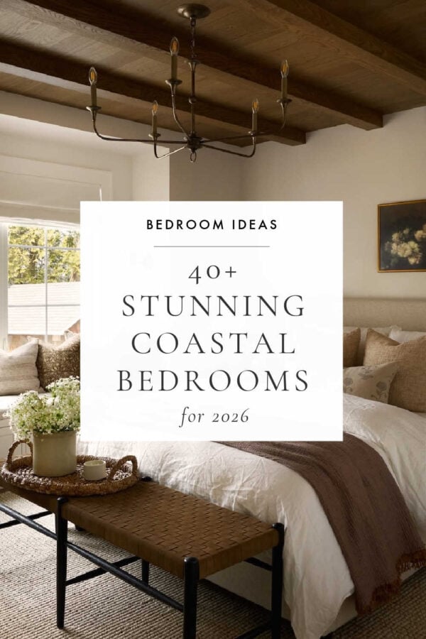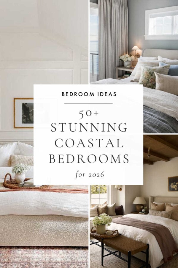 And in today’s post, I’m sharing gorgeous coastal bedroom decorating ideas for 2026, including chic coastal master bedrooms, guest room decor, cozy small bedrooms featuring modern coastal style, places to shop for coastal bedding, furniture, and bedroom decor, and more.