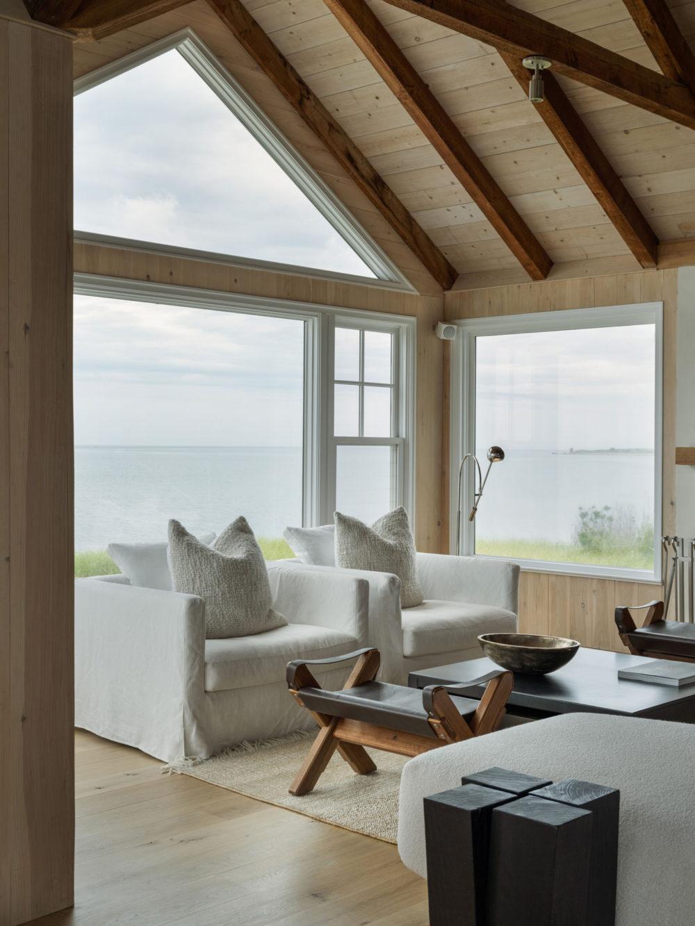 Here’s another view of this beautiful modern coastal living room design: