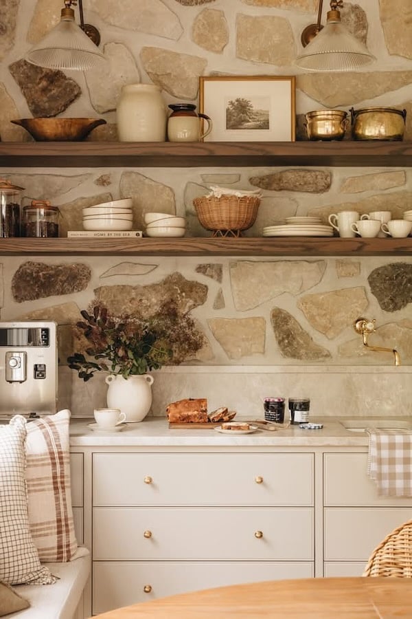 I’ve always drawn to kitchens with beautifully styled shelves — the kind that look effortless, collected over time, and perfectly imperfect.