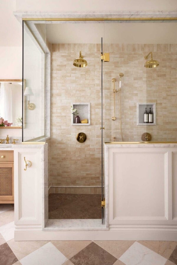 December 5, 2024 at 1:41 pmHi Jessica! Thank you for your lovely comment — your plans for your bathroom sound absolutely wonderful! While I do think you could get away with a brushed gold finish on your shower door, the usual practice is to match the finish on the shower door with the finish used in the shower. However, there are no set rules, so if you’re drawn toward brushed gold on the shower door, I say go for it. I hope this helps, and I wish you all the best with your beautiful bathroom updates! xo Jane