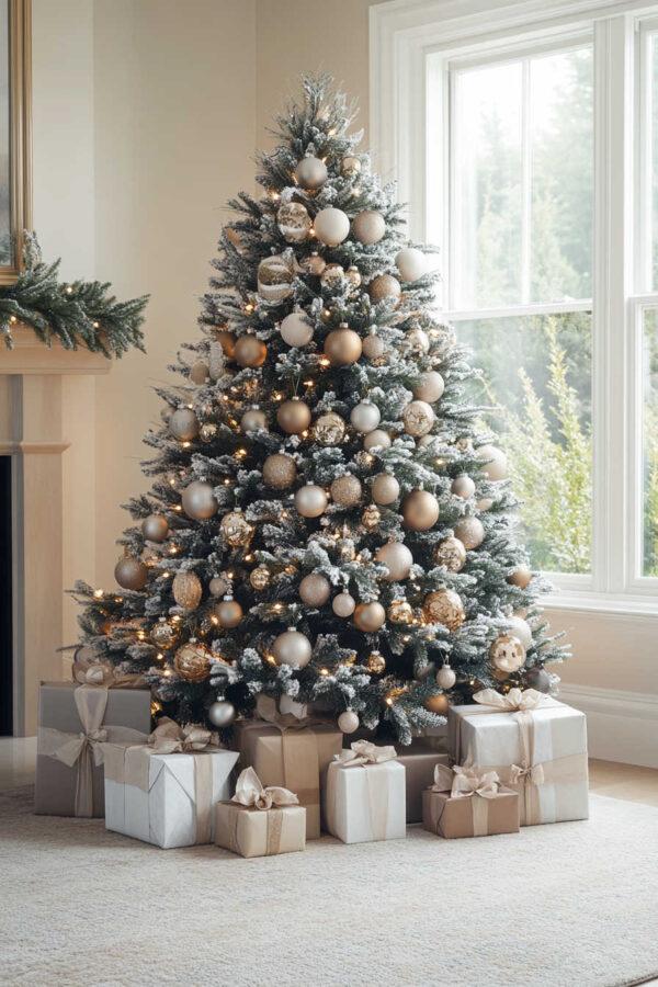 Even without bright colors, a neutral Christmas tree can be just as magical — it’s all about texture, layering, and warm glow.