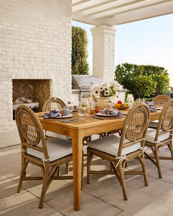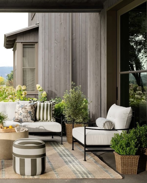 A few places to find affordable patio decor and beautiful outdoor furniture are Target, Pottery Barn, McGee & Co., Serena & Lily, and TJ Maxx.