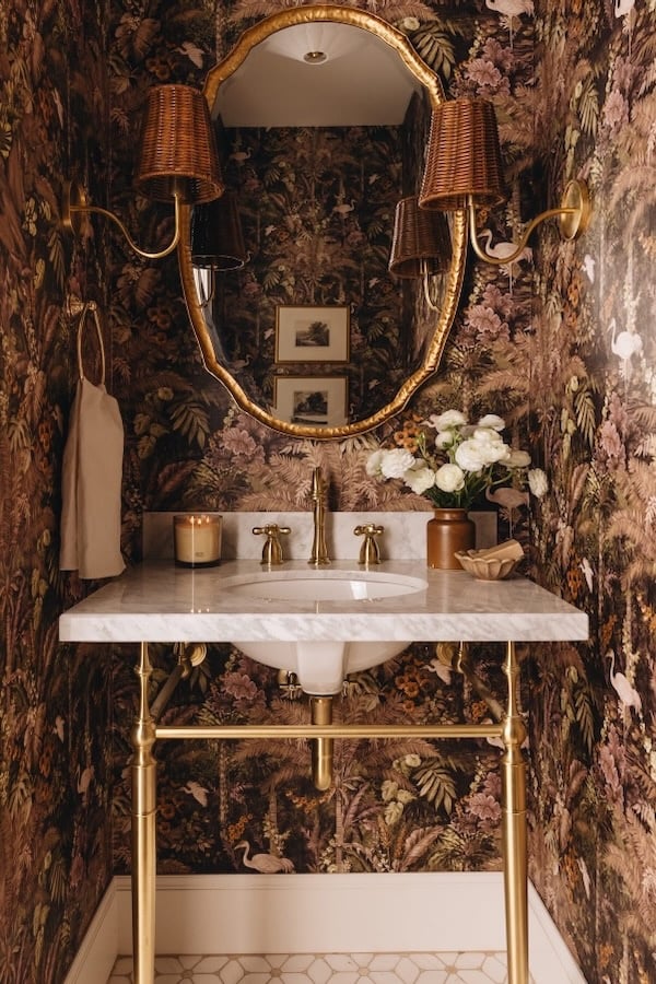 One of the easiest ways to transform a powder bath is with wallpaper.