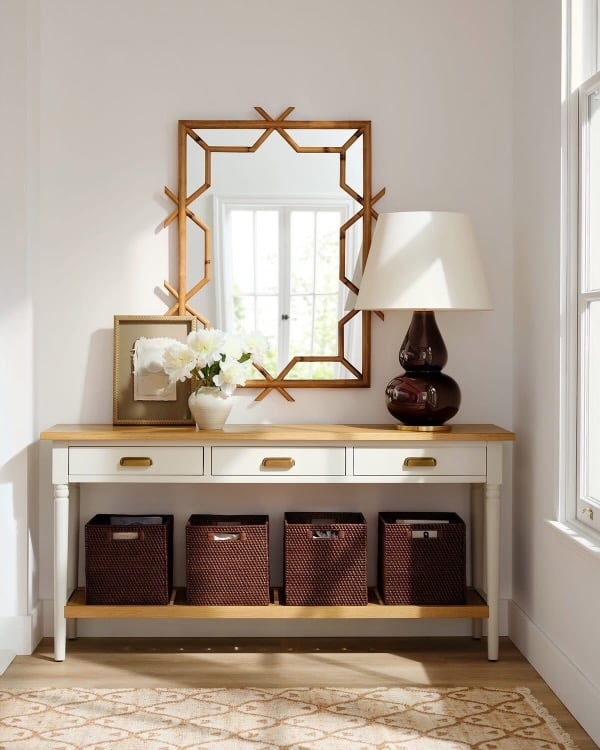 Dual purpose foyer decor: a pretty bowl or beautiful boxes are perfect for holding keys and wallets and other small items you need to keep track of.