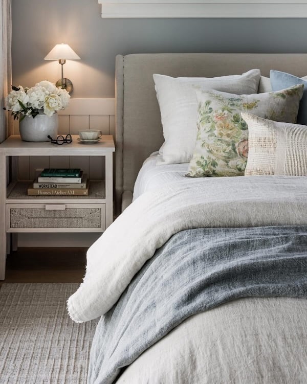 Try Benjamin Moore White Dove or Simply White on walls, add white slipcovers (easy to throw in the wash), and layer in textures — wicker, linen, light jute and sisal rugs — for depth.