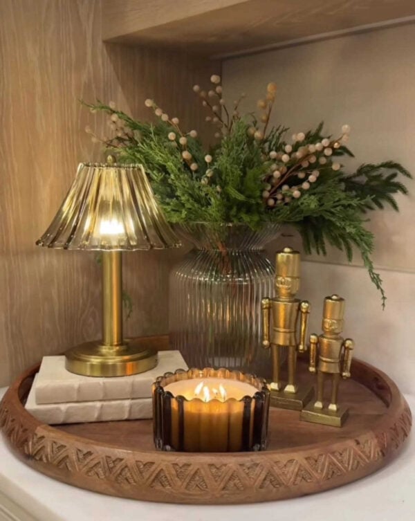 Soft rugs, warm lighting, candles, brass accents, plush throws, and simple greenery are my go-to winter decor ideas for making our home feel inviting and comfortable.