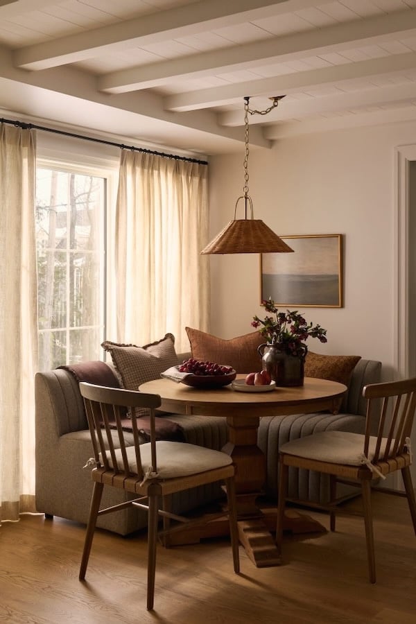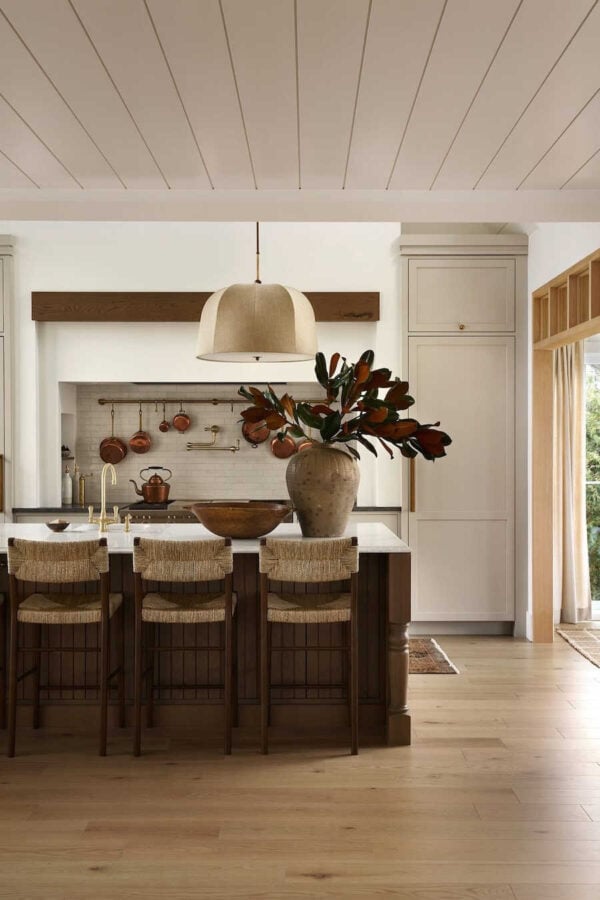 Even without bright colors, non-Christmas kitchen decor can be just as cozy and inviting — it’s all about texture and layering.